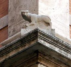 | Ziejąca ogniem salamandra na fasadzie kościoła św. Ludwika Króla Francji (Chiesa di San Luigi dei Francesi) |